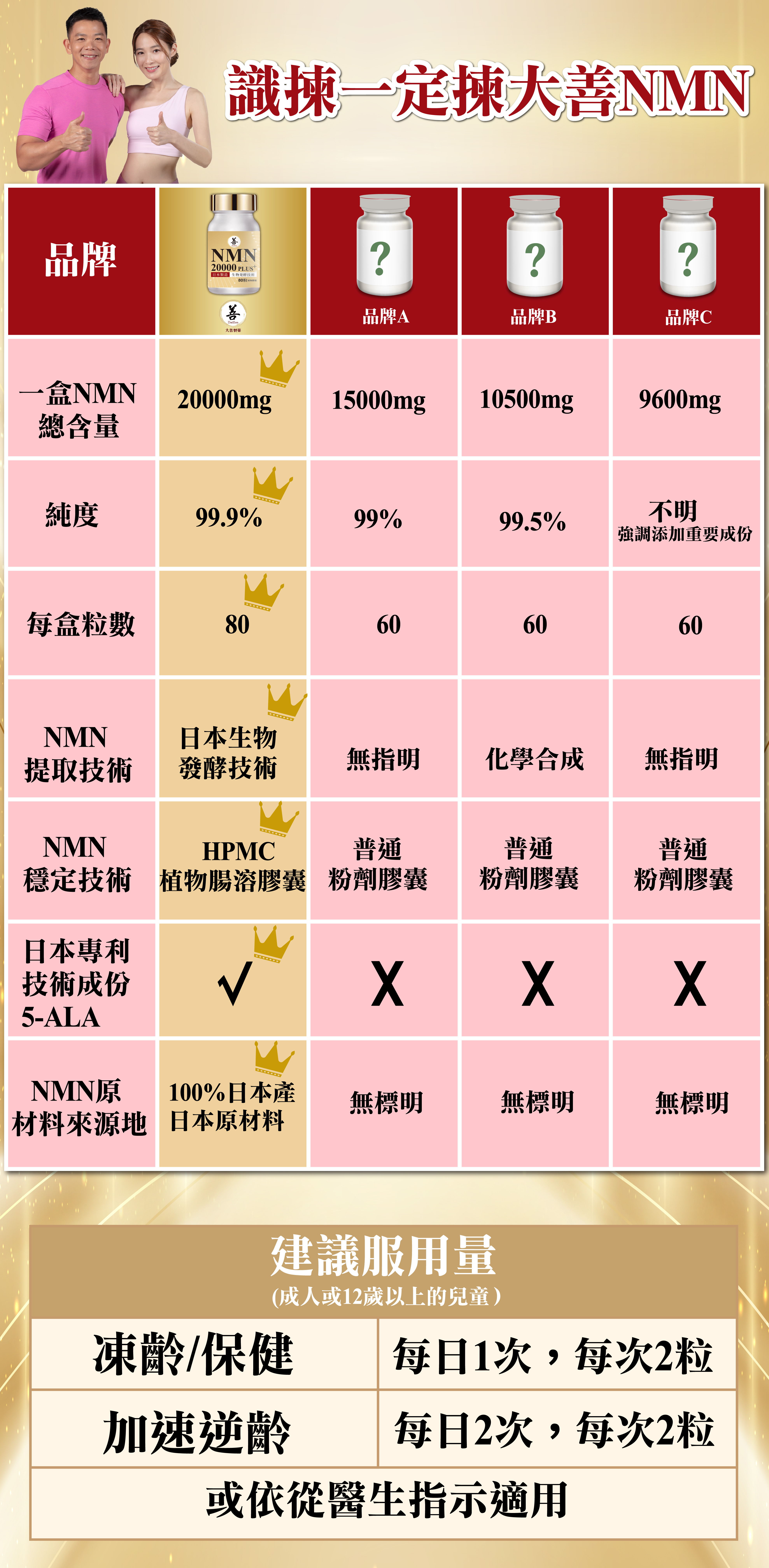 採用專利配方 5-ALA(5-氨基乙酰磷酸磷酸鹽)、輔酶 Q10 和白藜蘆醇,有效增强免疫力,對抗自由基,延緩衰老及促進新陳代謝