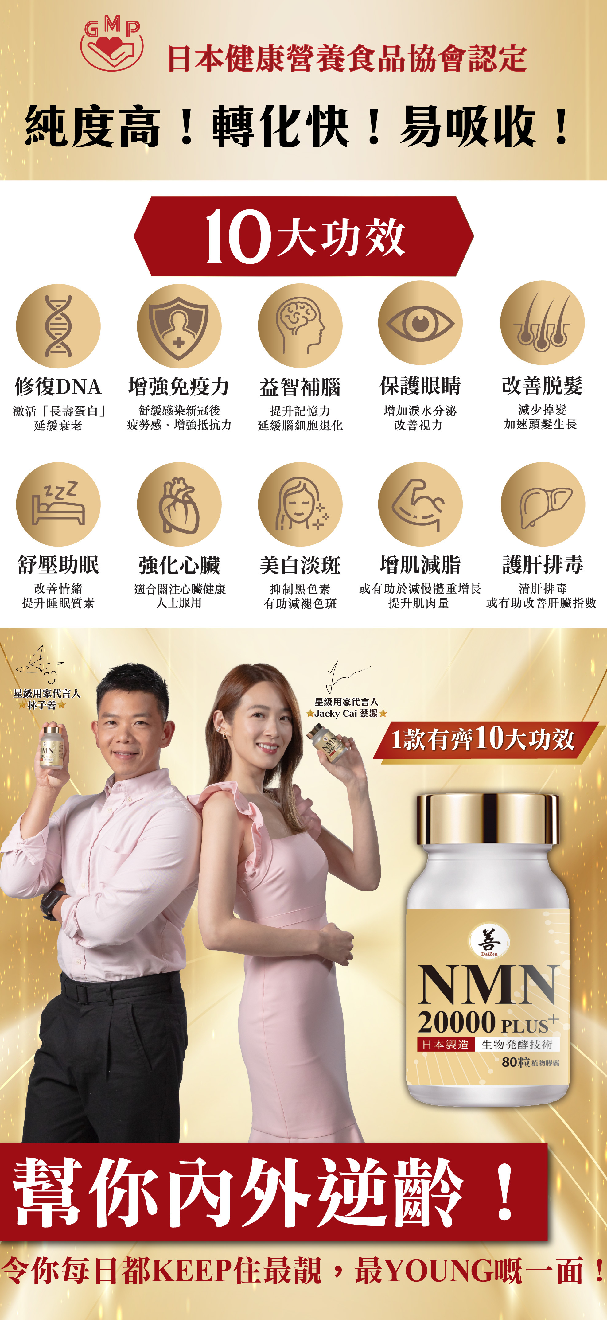 99.9% 高純度NMN,更易吸收,配方提供10個主要功效